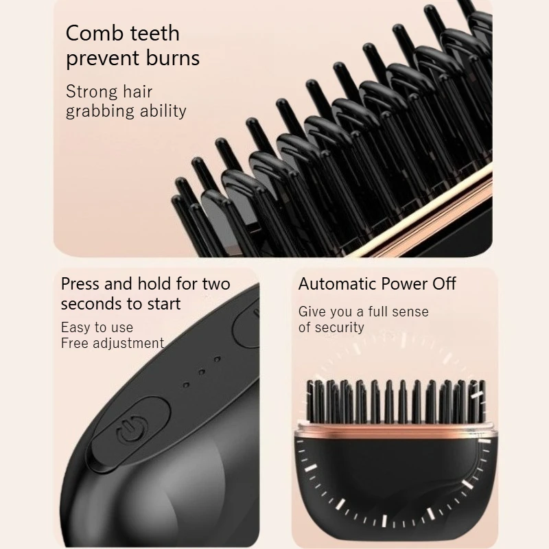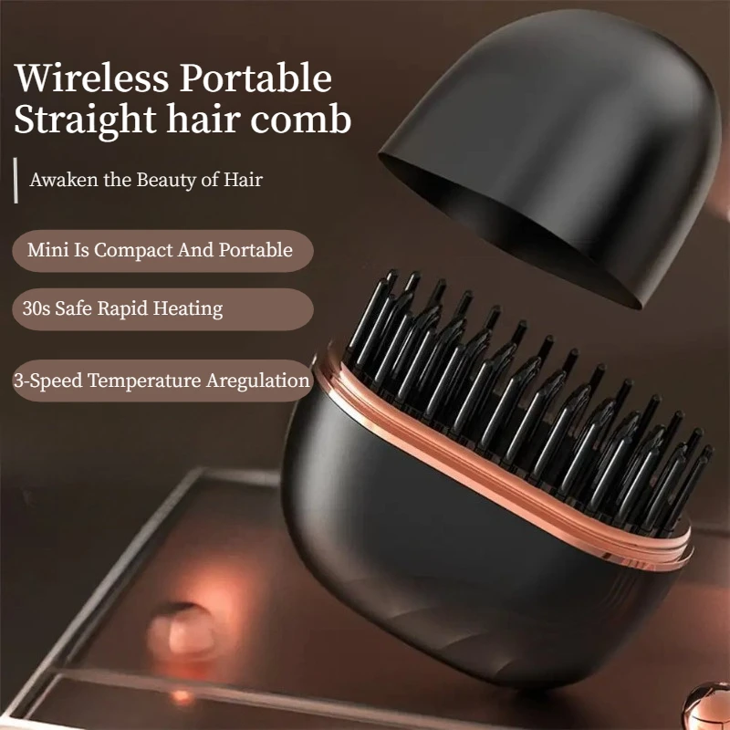 מסרק מיישר שיער אלחוטי – קומפקטי, נטען וללא נזק לשיער